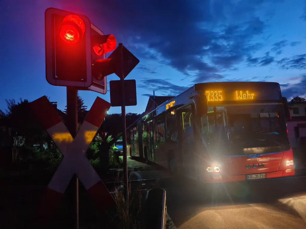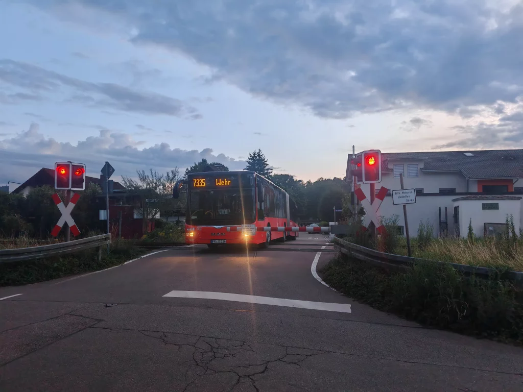 Ein Fahrgast konnte erfolgreich und gerade rechtezitig die Polizei alarmieren, sodass diese den Zugverkehr umgehend warnen und auch stoppen konnten. Auch der Schnellzug aus Rheinfelden hat einen Stopp einlegen können. Der Bus hat es leider noch nicht von den Gleisen geschafft.