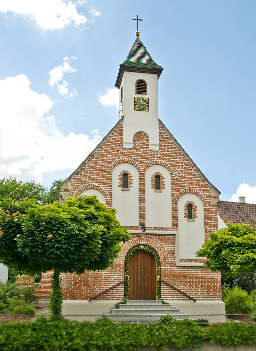 Die Kapelle St. Antonius liegt bei Hohentengen am Hochrhein und wurde im Jahr 1599 eingeweiht (Zugang über spitzbogiges Portal).