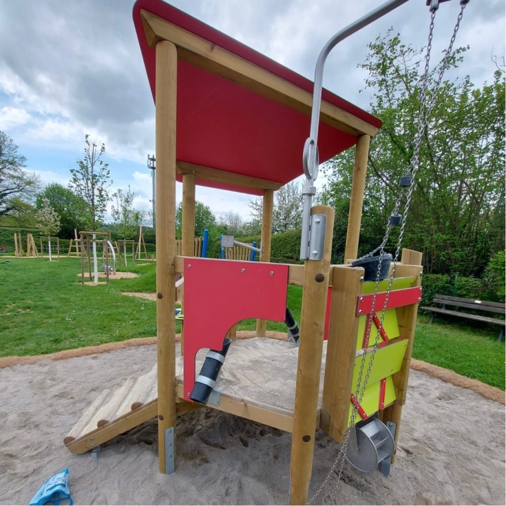 Mega toller, neuer Spielplatz. Auch super für kleinere Kinder (1 Jahr). Schatten wurde in Form von einem Sonnensegel über dem Sandkasten nachgerüstet